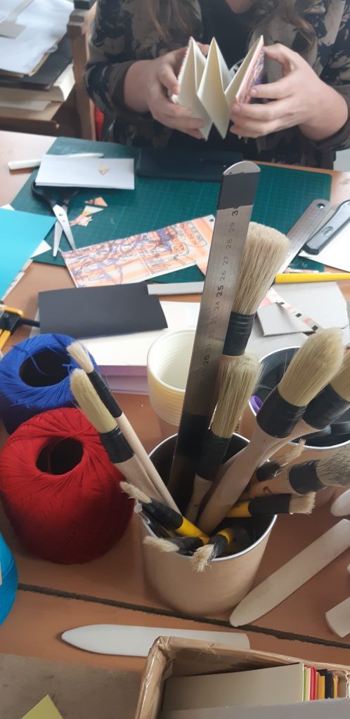 Particularité du travail de Nadiège SUDRE : elle réalise elle-même la reliure d’art dans son atelier.