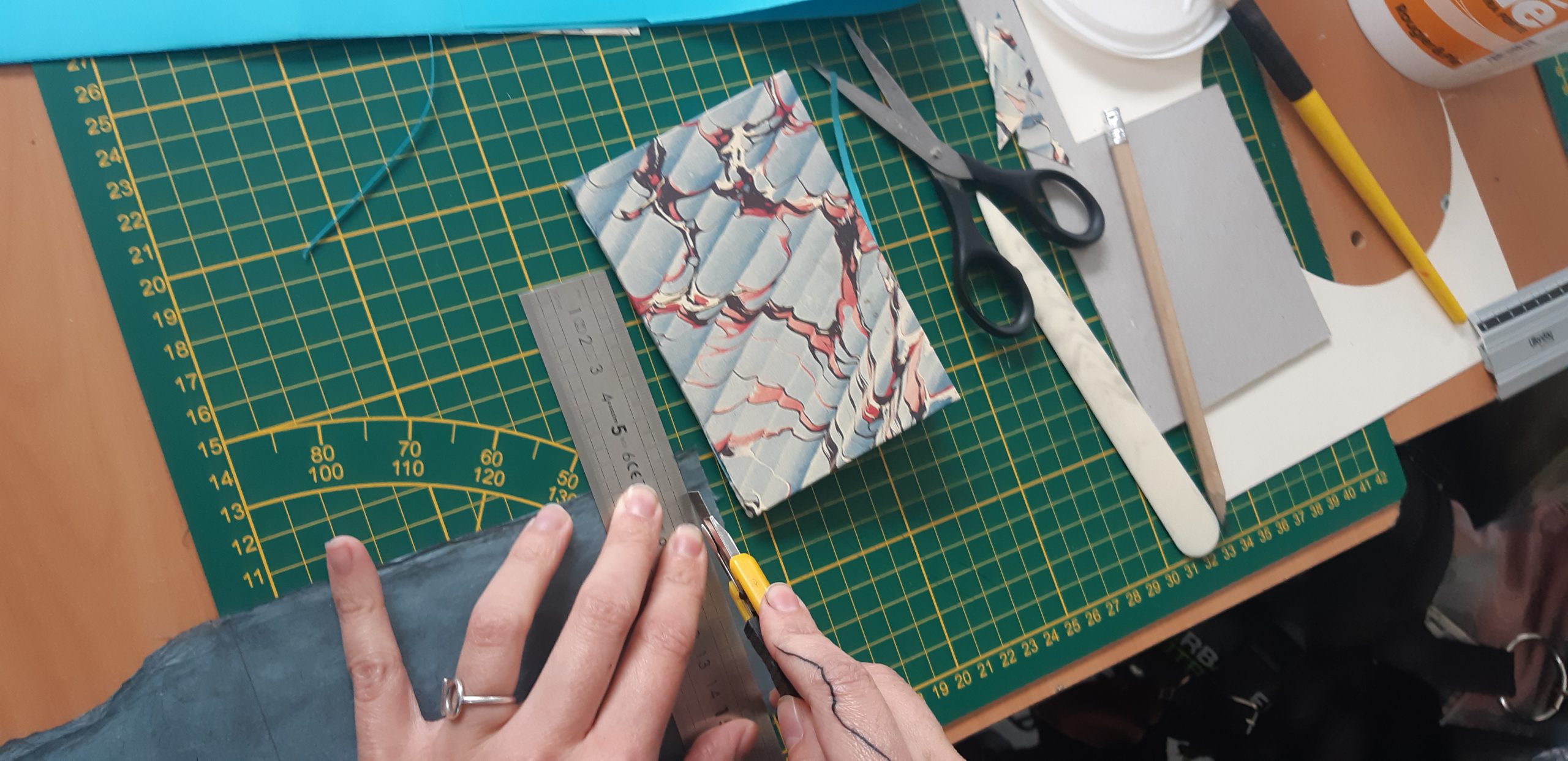 Papier, couleur, typographie, couverture … tout est choisi avec le ou la biographé.e. Trois exemplaires au maximum sont fabriqués, afin de conserver un caractère intime et précieux à l’attention portée à cette méthode de reliure du document.